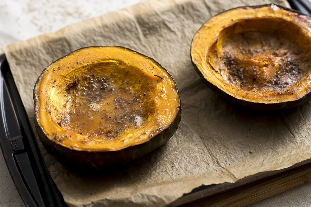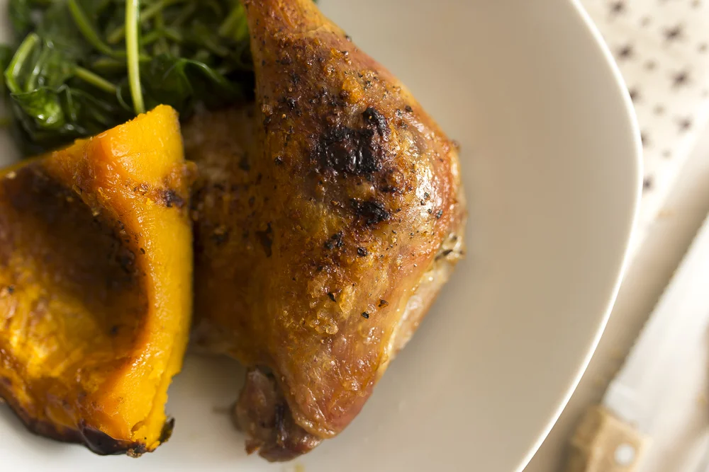 Bishop pairs this duck with seasonal greens, wilted and tossed with an Asian-inspired vinaigrette, the acidity of which nicely cuts the fat. I also served it with a roasted kabocha squash from Rondriso Farms. If you aren’t familiar with it, kabocha squash has sweet flavour and velvety-smooth texture, offering a great balance to this dish.
