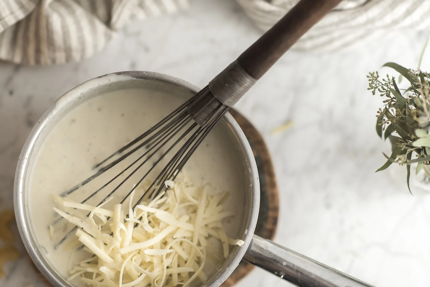 You are welcome to stop reading here and go ahead with the above described box version – it’s a great weeknight quick fix, especially if you’ve got kids – but if you’ve never made Mac ’n’ Cheese from scratch I’d encourage you to try it. You might find yourself wondering why it was ever put in a box in the first place. The package instructions require you to add milk and butter, and since you’re adding more cheese anyway, the only thing missing is flour which helps form the thickening basis of many classic sauces — a roux.
